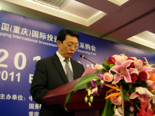 Liu Xuepu, Deputy Mayor of Chongqing Government delivers opening speech on the 2011 World Emerging Industries Cooperation Conference |
